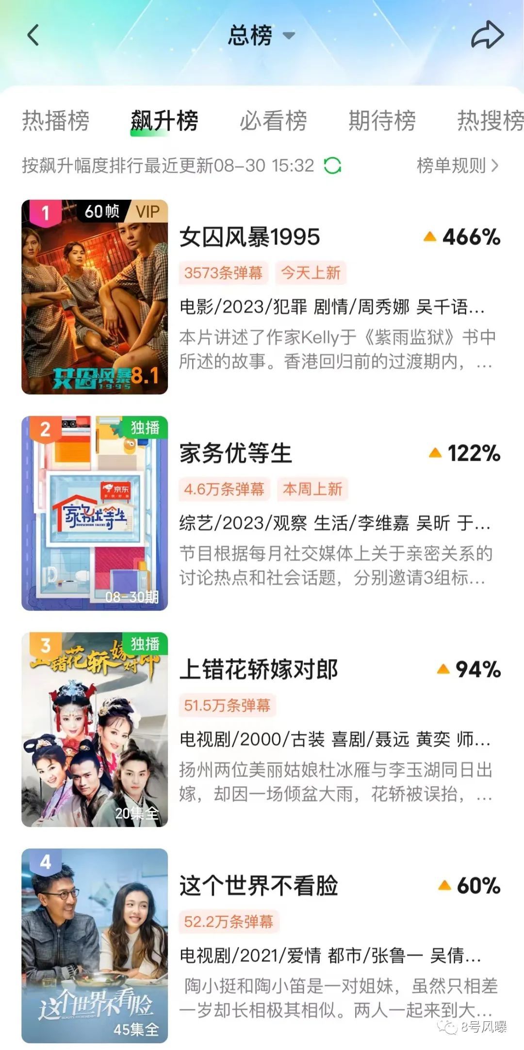面对这样的翻拍效果,再次勾起了大家对老版的回忆,《花轿喜事》在优酷播,《上错花轿嫁对郎》的版权在爱奇艺,更是直接登上飙升榜第三,网友们大胆调侃:看来这一波反而是桃赢了。
