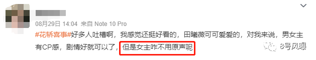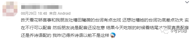 剧里田曦薇用的配音效果也不好,不仅让观众觉得极其出戏,还有网友误以为田曦薇的台词功底很差。