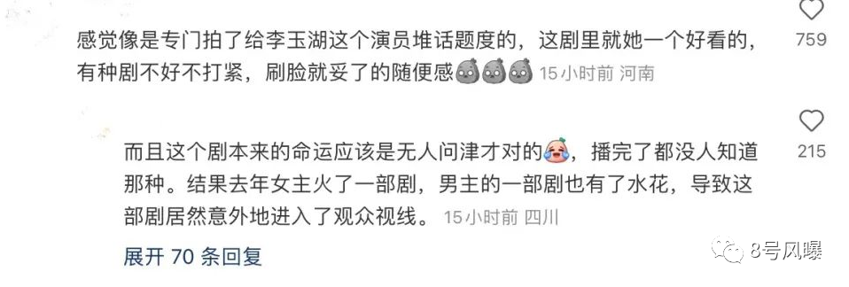 但到了《花轿喜事》成了一个女主,一个女二,杜冰雁显然得排在李玉湖的后头来做衬托,难怪网友说这部剧是为了捧女主田曦薇,所以细节什么的本就无关紧要。