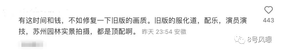 这部剧的配乐方面也遭到质疑,好不好听不说,跟剧情也不搭边儿,有网友评价:不如把老版精修一下放出来,这音乐都要好听一百倍。