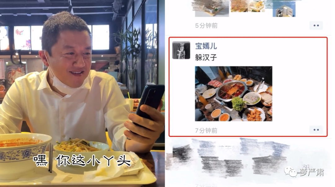 忍不住思考,这视频到底怎么来的?全程剧本和摆拍?还是对话和朋友圈以及女儿不带他吃饭的事情是真的,但是李亚鹏为了还原这个段子又演了一遍?总不见得是准备约女儿吃饭的时候就安排好机位来拍自己了?