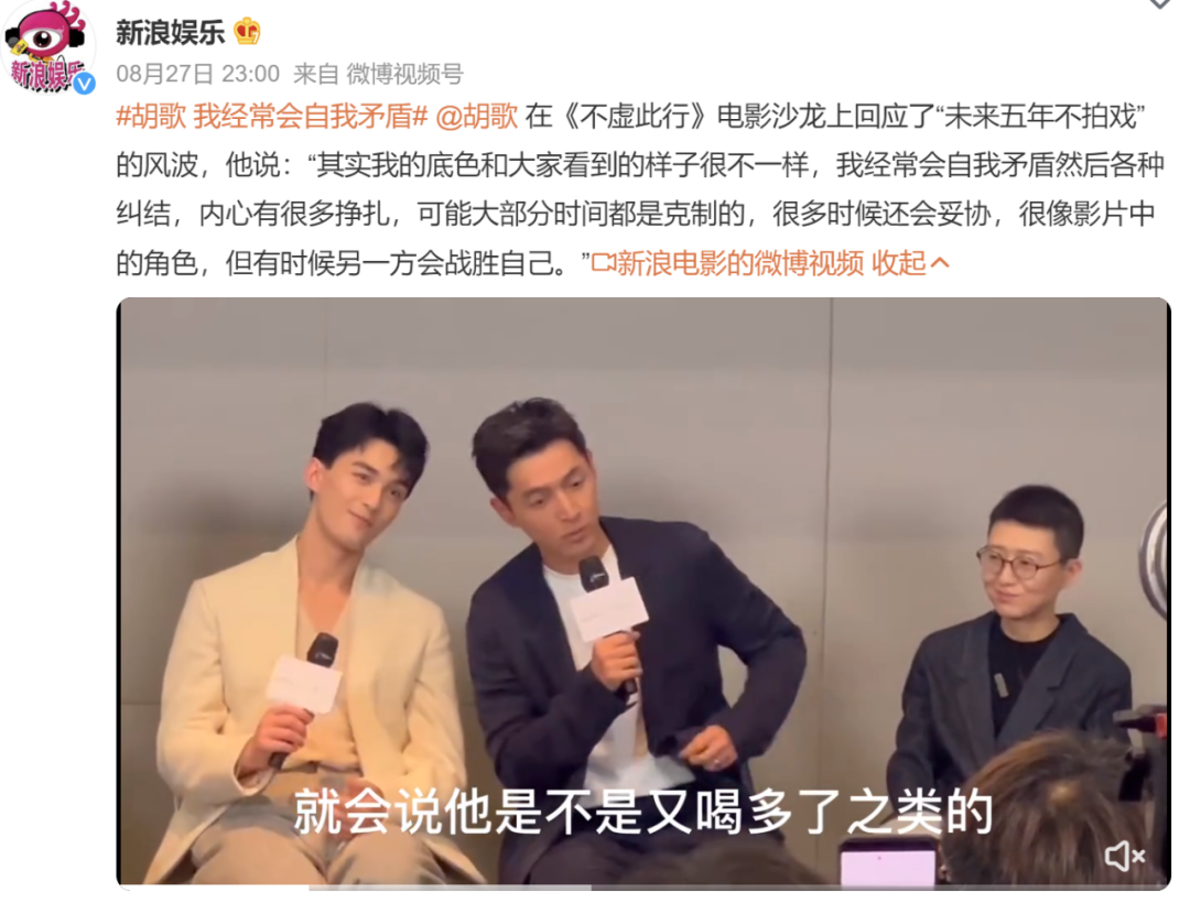 后续,又在电影发布会现场正面回应了此事,算是侧面辟谣了退圈之说。