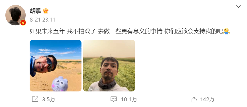 「如果未来五年 我不拍戏了 去做一些更有意义的事情 你们应该会支持我的吧 」