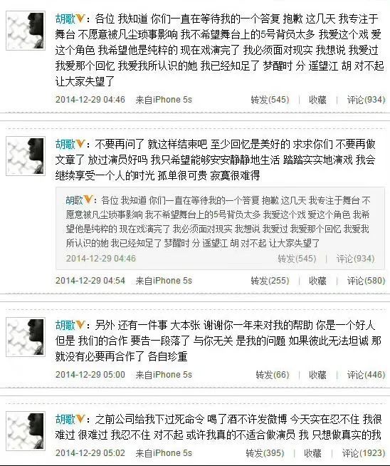 仅仅5天后,他又半夜连发4条微博宣布分手。