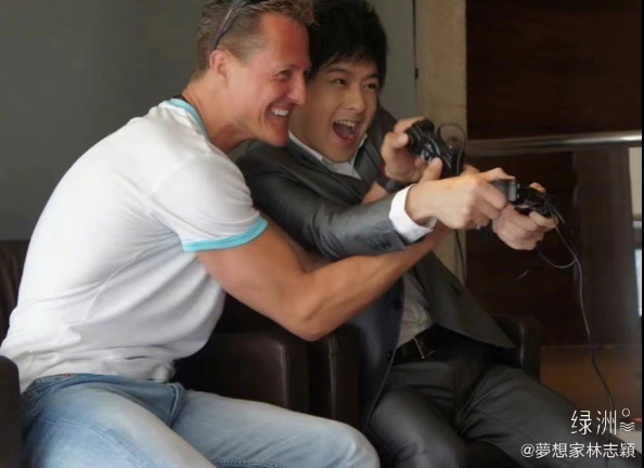 那张和车神舒马赫的合照也不是P的。