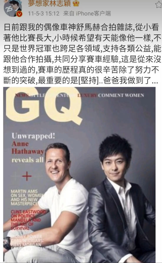 还有P图假装和车神舒马赫合拍杂志装逼的。