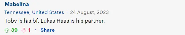 “同意,托比马奎尔是他男朋友,卢卡斯·哈斯(小李子的演员好友)是他的伴侣。”