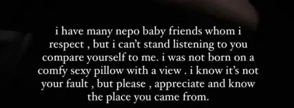 “我有很多值得尊重的星二代朋友,但我难以忍受听到你把自己和我进行比较。”