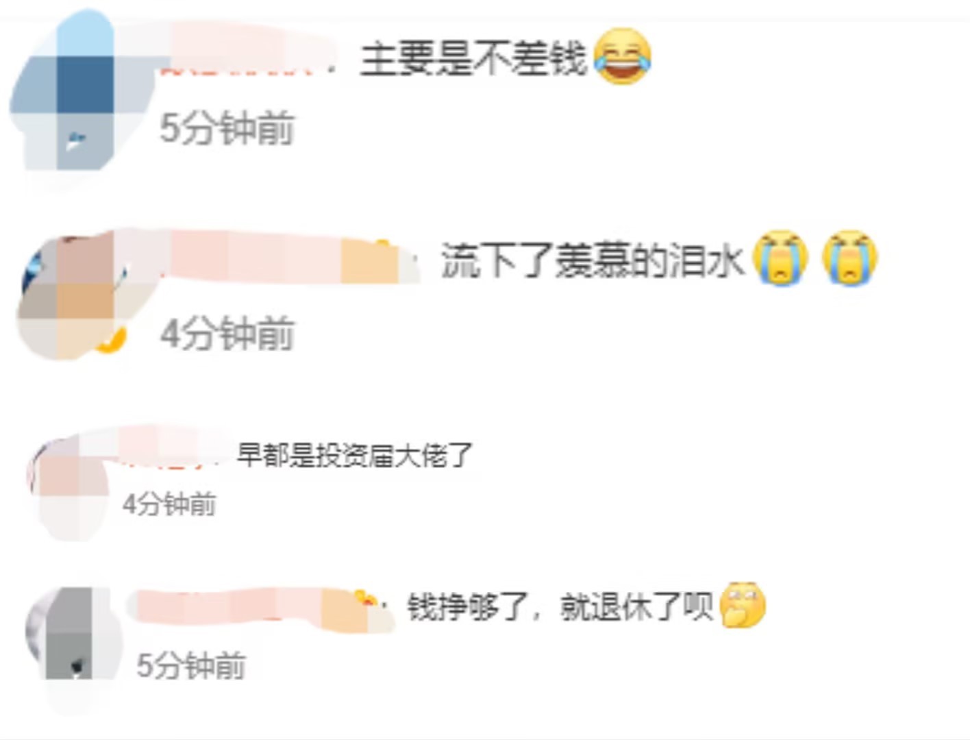 网友纷纷表示“羡慕”“主要是不差钱”“早就是投资界大佬了”等等。