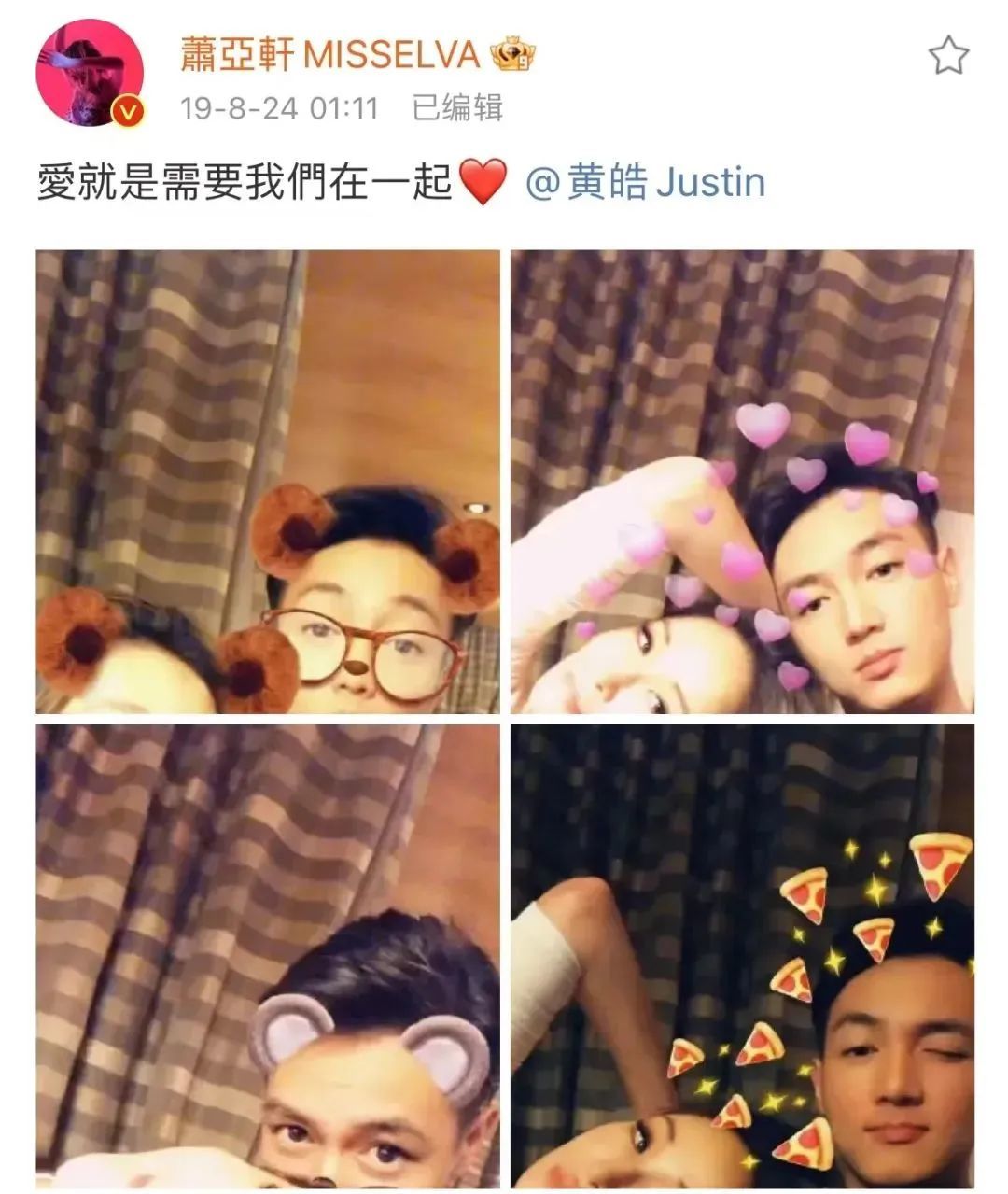 2019年,公布恋情那天,正是萧亚轩的40岁生日。