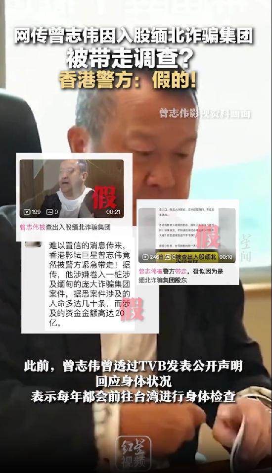 近日,有网友爆料称中国香港演员曾志伟被查出入股缅北诈骗集团,已被警方带走调查。对此,红星新闻记者从香港警方公共关系科工作人员处获悉,该消息不实。