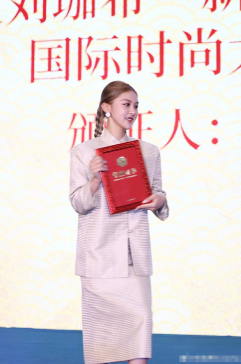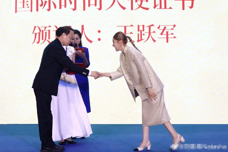 由新国潮文展总策划、深圳报业集团总编辑王跃军为刘珈希颁发新国潮文展会“国际时尚大使”证书,鼓励其作为时尚博主,将当下年轻一代的生活方式与传统文化融合,注入创意内核与发展可能,在自身擅长的时尚领域把更多世界文化“引进来”的同时也推动传统文化“走出去”,传播更多时尚正能量。