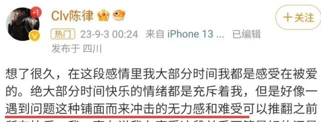 时隔两个小时后,这段恋情还是由陈律划下了休止符↓