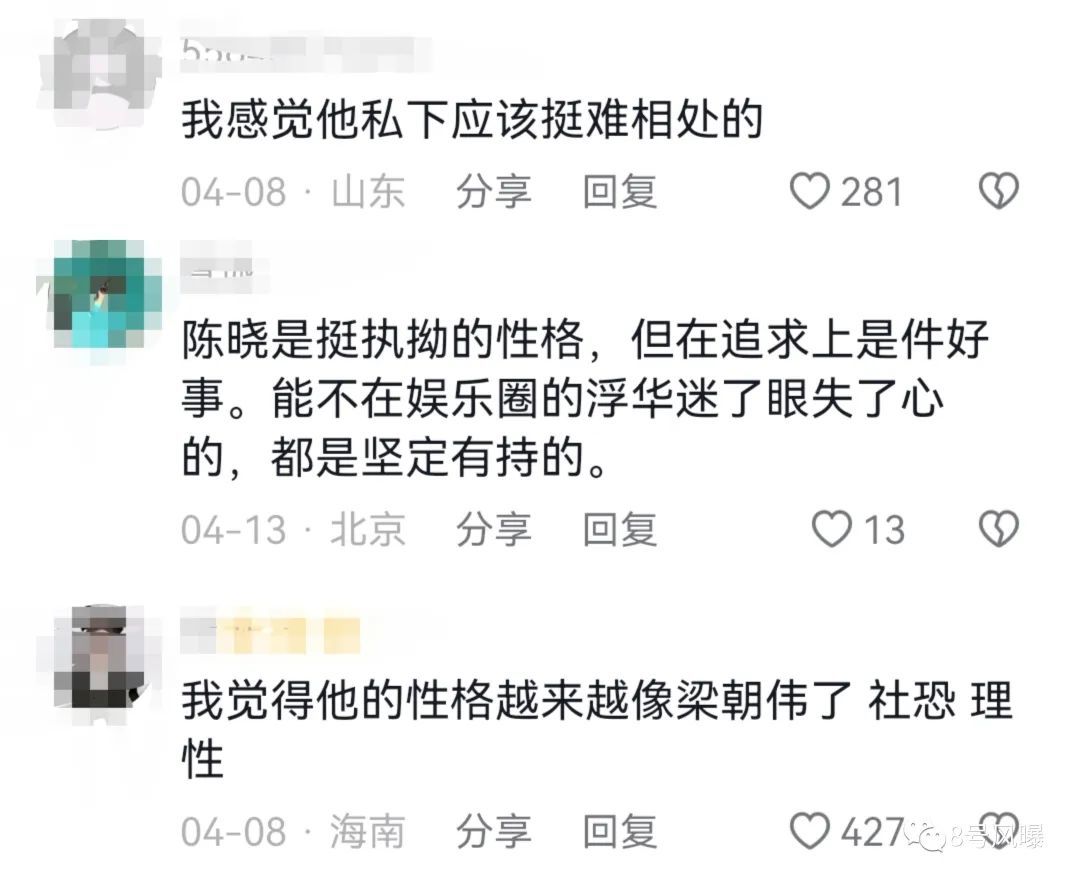 其实从陈晓言行中可以看出,他就是一个很有性格,甚至比较自我的人,私下里他的性格也很直爽,或者说直爽过头也不为过。