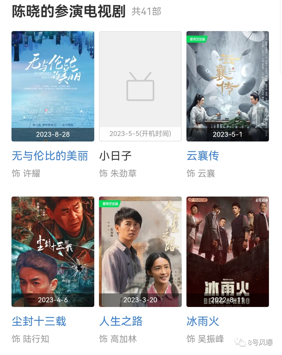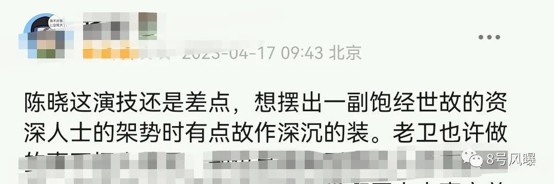 还有人分析陈晓是典型的剧抬人类型,意思就是说剧的成败跟他关系不大,主要是看题材和剧本能不能受观众喜爱。