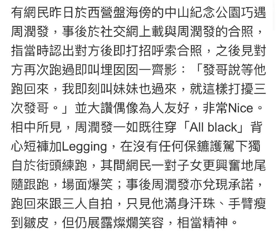 9月9日,据港媒报道,网友再次偶遇周润发雨后跑步,伤后身体消瘦,手臂瘦到皱皮但精神极好。