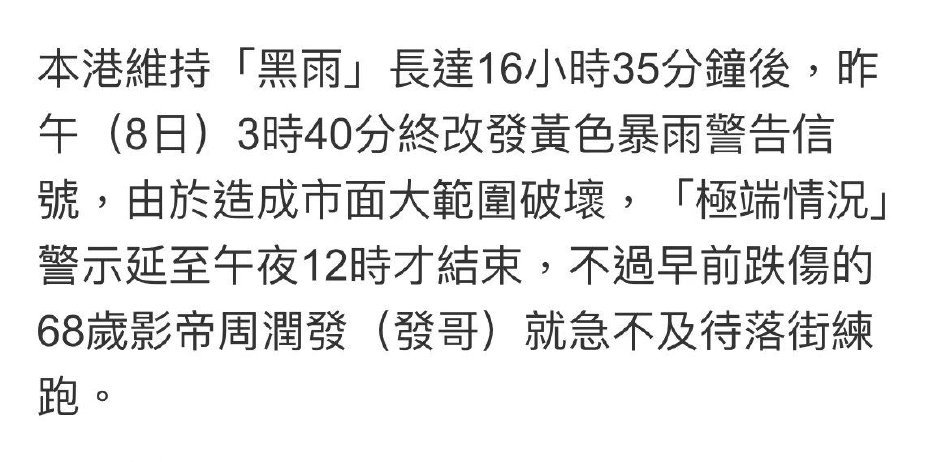 此前,港媒曝周润发跑步受伤,摔伤肋骨,伤后不听医嘱继续坚持跑步。