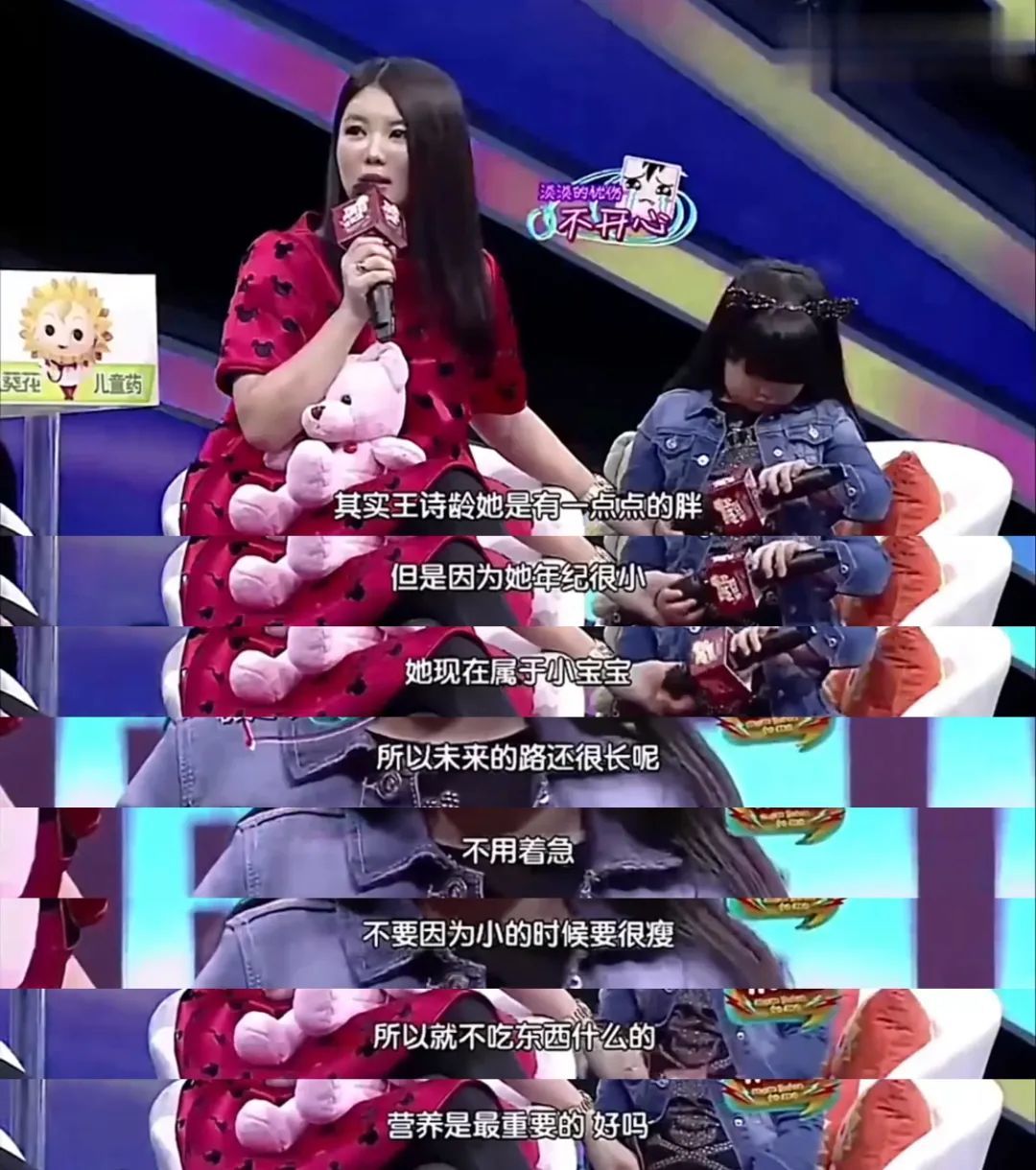 王诗龄也曾在一档节目中遭到“身材攻击”,别的小朋友发出提问: