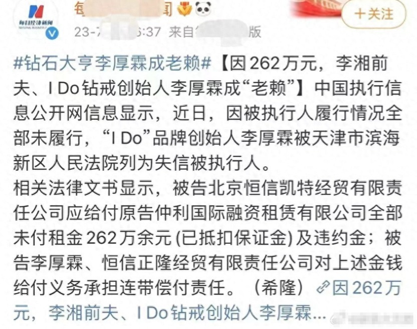 近日,李湘前夫李厚霖被曝老赖后在社交平台发视频哽咽回应破产风波。他感慨自己这20多年的艰苦奋斗的历程,同时也为自己没有掌好企业这艘大船感到抱歉,他表示也曾经想过放弃,但是想到自己的人生还有很多未尽的责任和义务,所以接下来自己还是会继续前行,不惜一切继续拼搏奋斗。