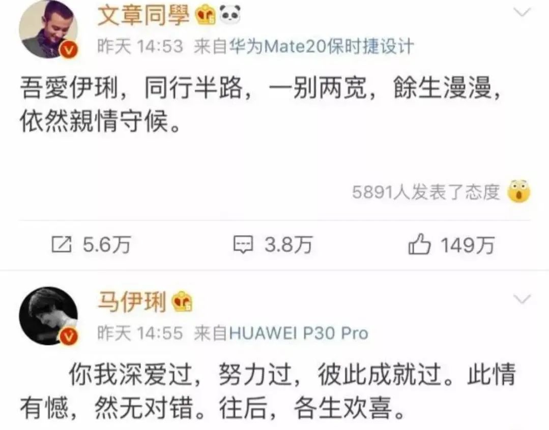 考虑到婚姻关系的联结、娱乐圈的利益联系等等,文马从“模范夫妻”到“得过且过”,但一直没离。