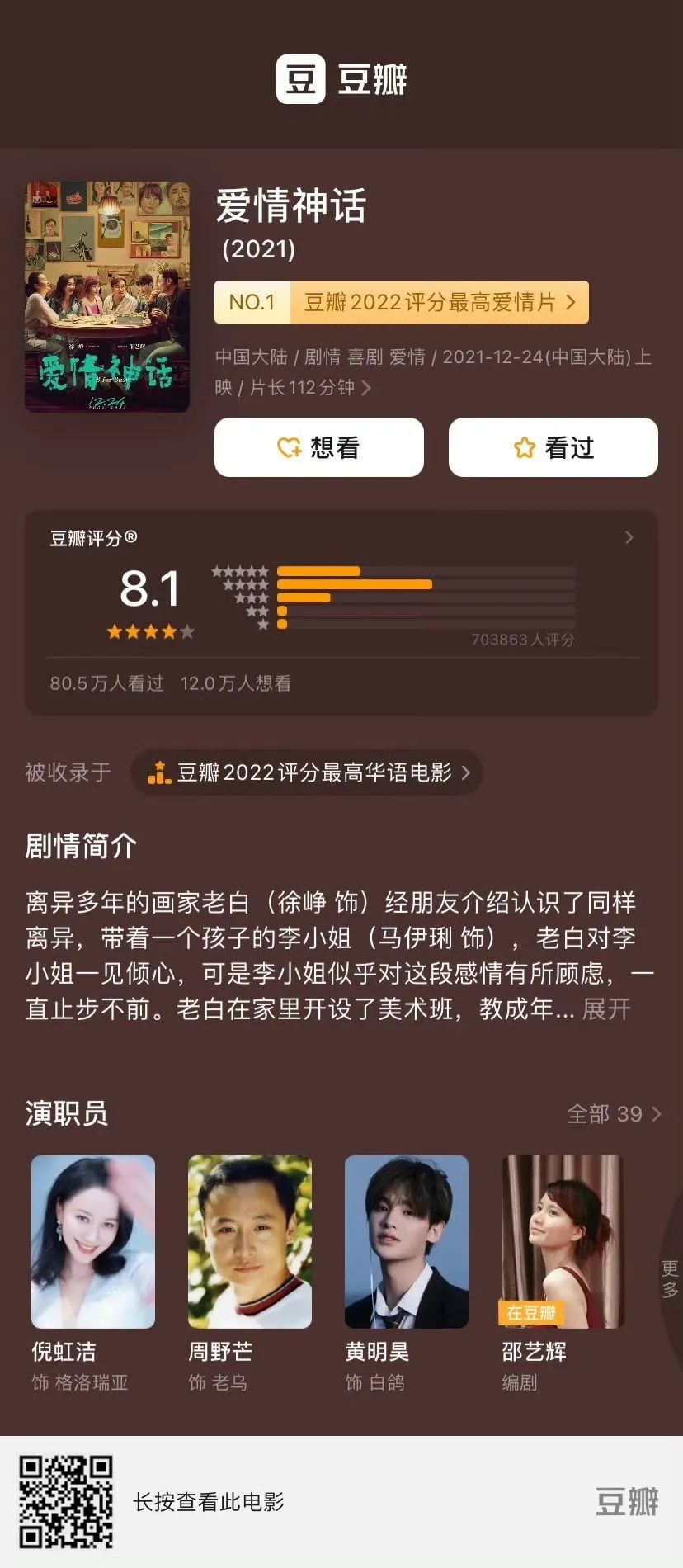 主演《爱情神话》,豆瓣2022最高分华语电影,