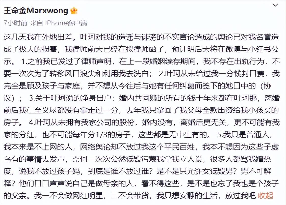 此言一出,叶珂前夫马上炸锅了,发出5点声明要起诉叶珂,否认出轨的同时,还爆料叶珂拿走了两人结婚多年的共同财产,名下的房子和公司股权都归他所有。
