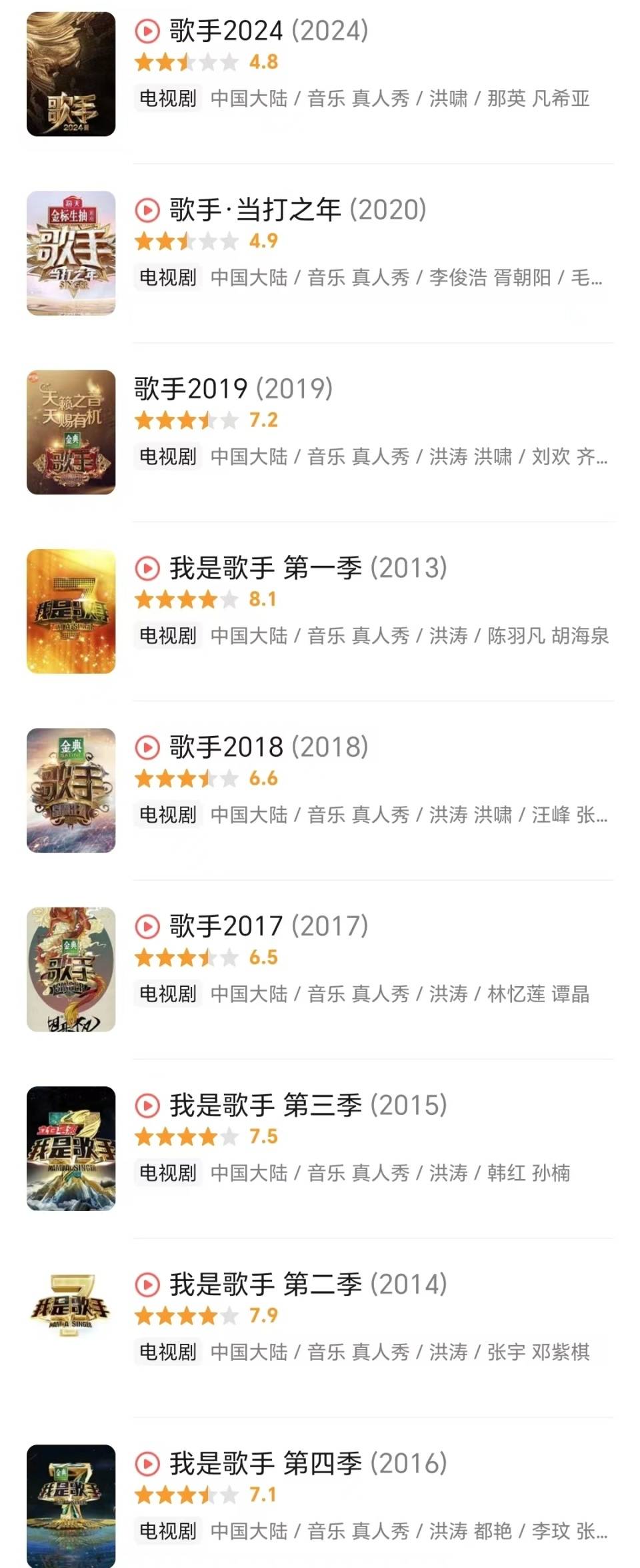 随着总决赛的落幕,《歌手2024》豆瓣评分已经跌至4.8分,为历届最低。