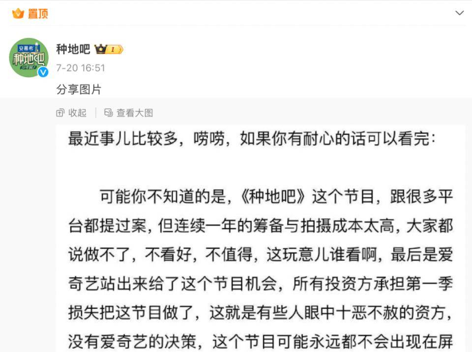这十个男孩本身并没有像普通明星和偶像那样有太多的架子或面具。无论是戏内还是戏外,他们都非常踏实,彼此之间产生了强烈的化学反应,符合“国内娱乐圈活人”的标准。这使得粉丝与“十秦天”之间的“真情”显得格外“真实”和“充实”。总的来说,节目本身的设计和十位节目嘉宾的努力共同促成了粉丝的忠诚度和凝聚力,实现了节目与粉丝的双向关系。但当双方急匆匆地往前冲的时候,就会出现一定的偏差。以IP为本还是以人为本?可见,粉丝价值在《种地吧》的内容生态中是不可忽视的,这也决定了它与其他普通综艺在运营逻辑上的差异。在这场公关危机中,节目组与观众之间存在着明显的认知偏差,即《种地吧》,节目的IP和节目MC之间的化学反应哪个更重要?节目IP的典型和更重要的例子往往是开拓创新的节目内容,依靠新鲜和可扩展的节目形式来吸引观众对内容的长期关注。即使更换节目,观众也能接受。例如《奇葩说》介绍的辩论、《明星大侦探》发起的现实生活调查、《一年一度喜剧大赛》使用的小品表演等。