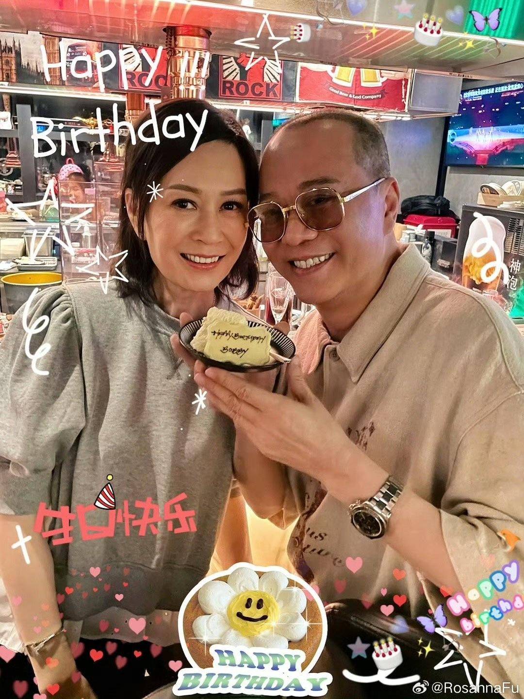 欧阳震华手中捧着一块小蛋糕,想来也是为了配合生日的仪式感,看到两夫妻相爱三十载还能这么恩爱,难怪网友们直呼又相信了爱情。