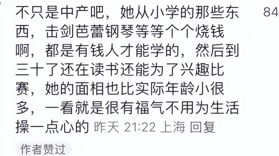 而江旻憓自己也很争气,她不但在击剑方面突出天赋,还能一边兼顾学业,她靠文化成绩从斯坦福大学完成本科学业,之后又在中国人大读完法学硕士,现在更在香港中文大学读法学博士。