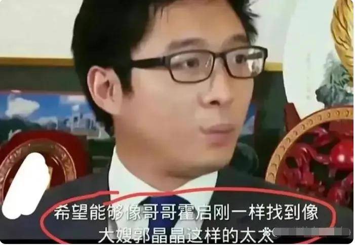 霍启山本人也说过,希望将来可以找一位像大嫂郭晶晶那样的妻子。