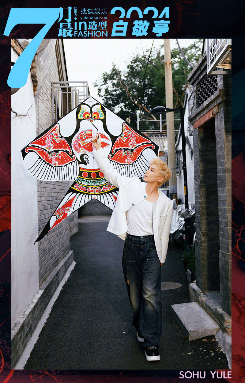青砖灰瓦、胡同小道,白敬亭化身国潮少年,轻松拿捏“北京范儿”,时尚这一领域,真的没人可以质疑他!素雅笔挺的白色外套、水洗发旧的牛仔阔腿裤、休闲感十足的运动鞋,这些基础单品风格迥异,却被他解构重组,生出一种别致的格调。染着金发,他架上太子镜,满脸不羁。摇摇蒲扇,就把中国传统的街头元素揉入了现代造型,营造出动人的烟火气。被放任的都市化潮流与地域化的生活气息碰撞,靠失序感带来一场跨时空的奇异反应,不得不说,这City boy算是让他玩明白了!