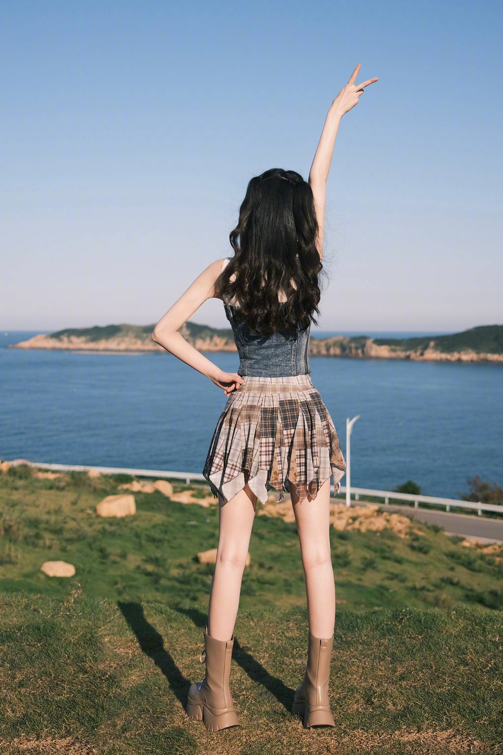 户外辣妹真的请按孟子义的标准卷起来!上半身灰蓝色牛仔抹胸,紧紧包裹着她的身姿,强调着纤瘦的肩颈线条,利落有型。下半身经典的格子元素,不规则剪裁,风情而浪漫,别有小女生的活力。虽说整体造型运用了不显张扬的莫兰迪色系,但脚上的高筒靴霸气侧漏,让她瞬间变身从美式校园里走出的“腿精”,流露出充满能量的野性。站在阳光里,孟子义一头深褐色的卷发妩媚多情,披上了薄薄的光辉,好似自带刚刚睡醒的倦意,美得好有穿透力。