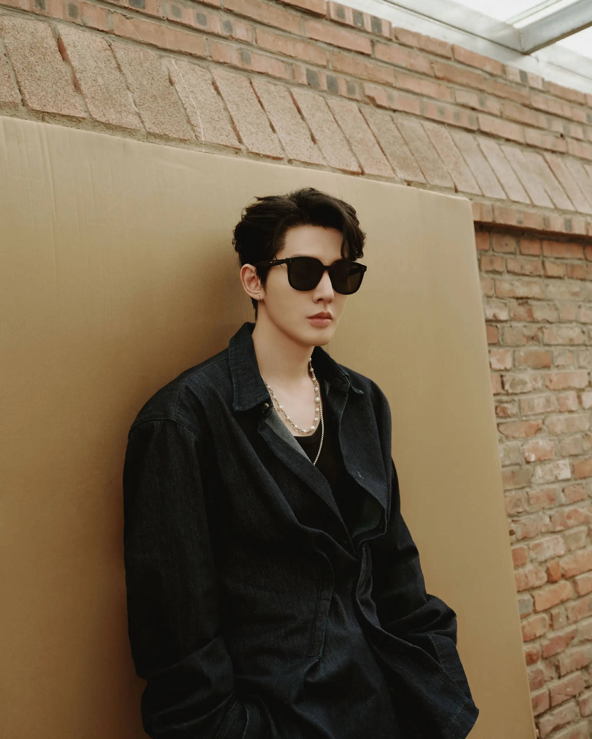 别人还在当“行走的衣架”,邓为已经Next Level,晋升为“行走的衣橱”。热爱赶时髦的他,穿搭灵感之多,怕是能举办场个人T台show。墨蓝色的全套丹宁尽显沉稳、气场A爆,标榜着鲜明的时尚态度,开门见山。性感宽松的V领向下延伸,慵懒撩人,内搭黑色的贴身打底,扔难阻挡他人的想入非非。看似随意的褶裥,立体而有艺术感,于他劲瘦的腰部骤然收紧,勾勒出充满荷尔蒙的倒三角身材。穿入的极简金属胸针,点睛之余增添一丝冷峻,呼应着脖颈上亦刚亦柔的叠戴项链,狂魅酷拽,带有攻击性的帅气赫然弥散开来。