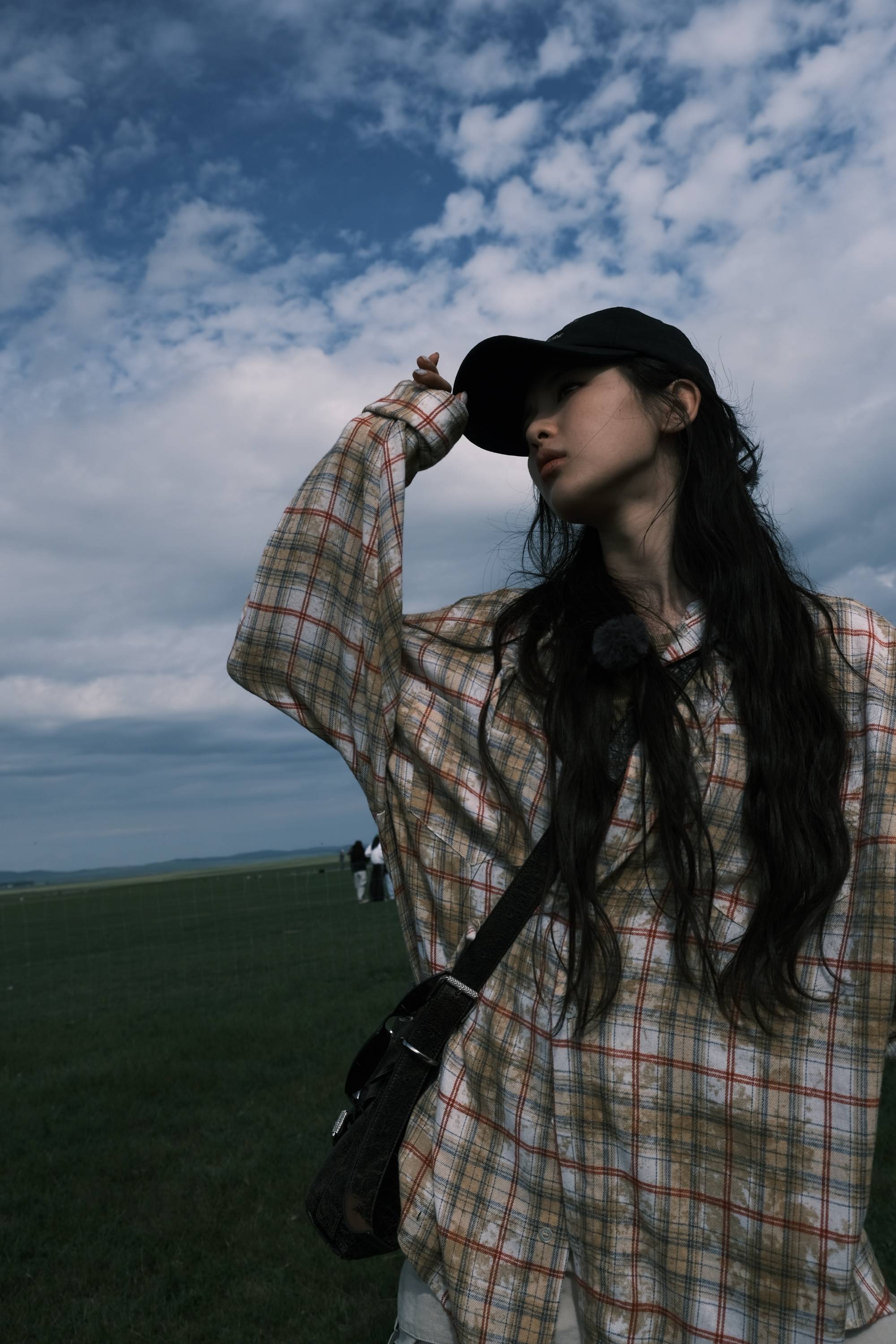 杨超越到底还有多少格子衫是我们不知道的?这身穿搭真的让格子控狂喜。一望无垠的草原上,宽松的刺绣格子连帽衫在风中凹凸着自由的形状。凌乱的长发随性拍打,无拘无束的美,没有修饰。头上一顶美式深色棒球帽,下身一件chill感工装裤,外貌柔美的杨超越陡然生出中性的硬朗,好似一个把“Who Cares“写在脸上的港系少年。