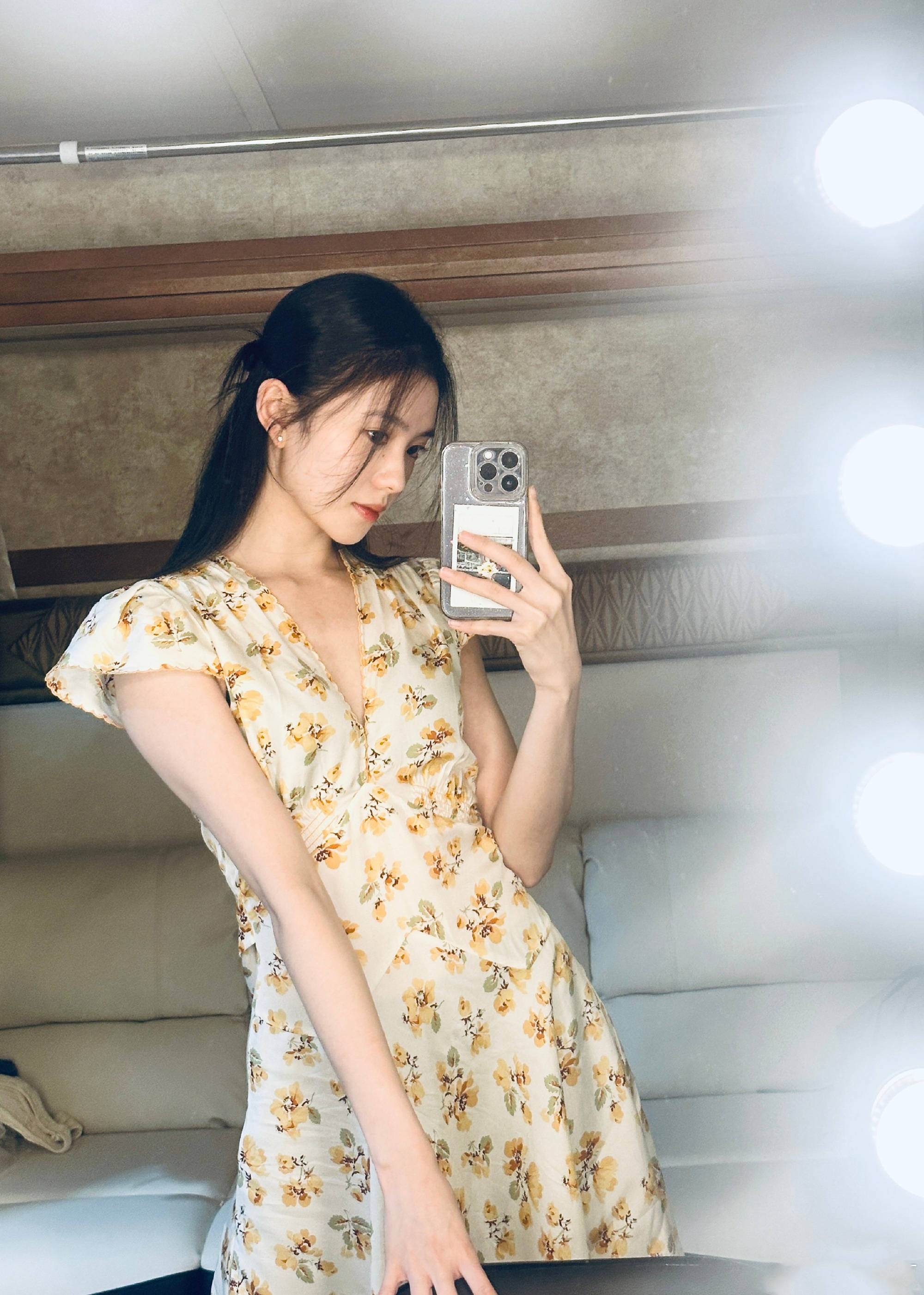 走温柔淑女的路线,刘浩存真是美得一骑绝尘。淡淡的浅黄色将她衬托得格外明媚,小巧的橘色花朵洒满裙身,充斥着花田的馥郁气息,令人一秒入夏。性感的小V领,搭配着减龄的小飞袖,撩人之余,清纯有加。梳着呆萌的垂耳兔发型,刘浩存将法式浪漫发挥到极致,轻松凹出香甜的感觉,好似一块可口酸甜的巴巴露亚。