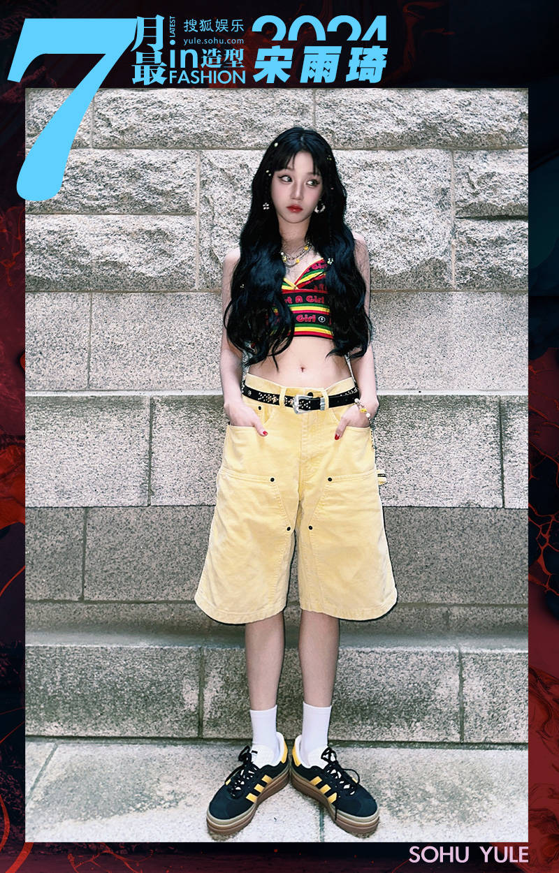 不愧是新晋的辣妹天花板,宋雨琦算是把各种各样的夏日单品运用到极致了!鲜艳的红黄吊带自带亮眼属性,露出紧致的小蛮腰,清凉又火辣。组合着看似不搭边的米色中裤和黑色德训鞋,却也新奇独特,鬼马又搞怪。利用跳跃对比,她释放出多巴胺因子,交织出这身造型反叛和千禧感的底色。一头乌黑的麻花编发浓密如瀑,被乖巧梳理在双肩,反而凸显出乖张的个性,更潮流也更反套路。