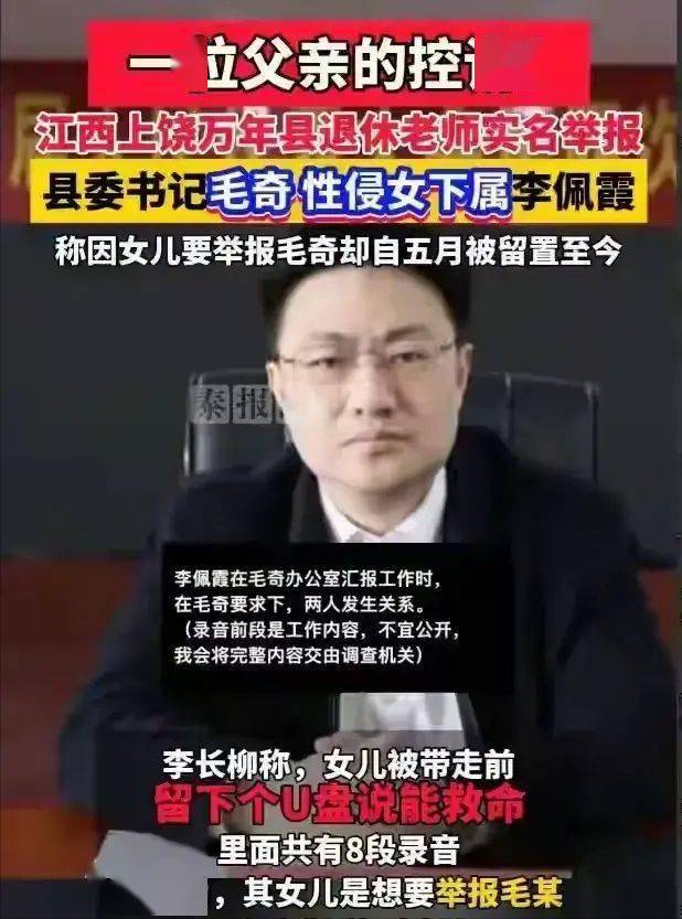 事件的起因是李佩霞与万年县委书记毛奇之间的纠葛,引发了广泛的讨论。李佩霞被县纪委带走留置的消息传出后,她的父亲李长柳通过网络实名举报,希望为女儿发声,并期待女儿能得到公正的对待。