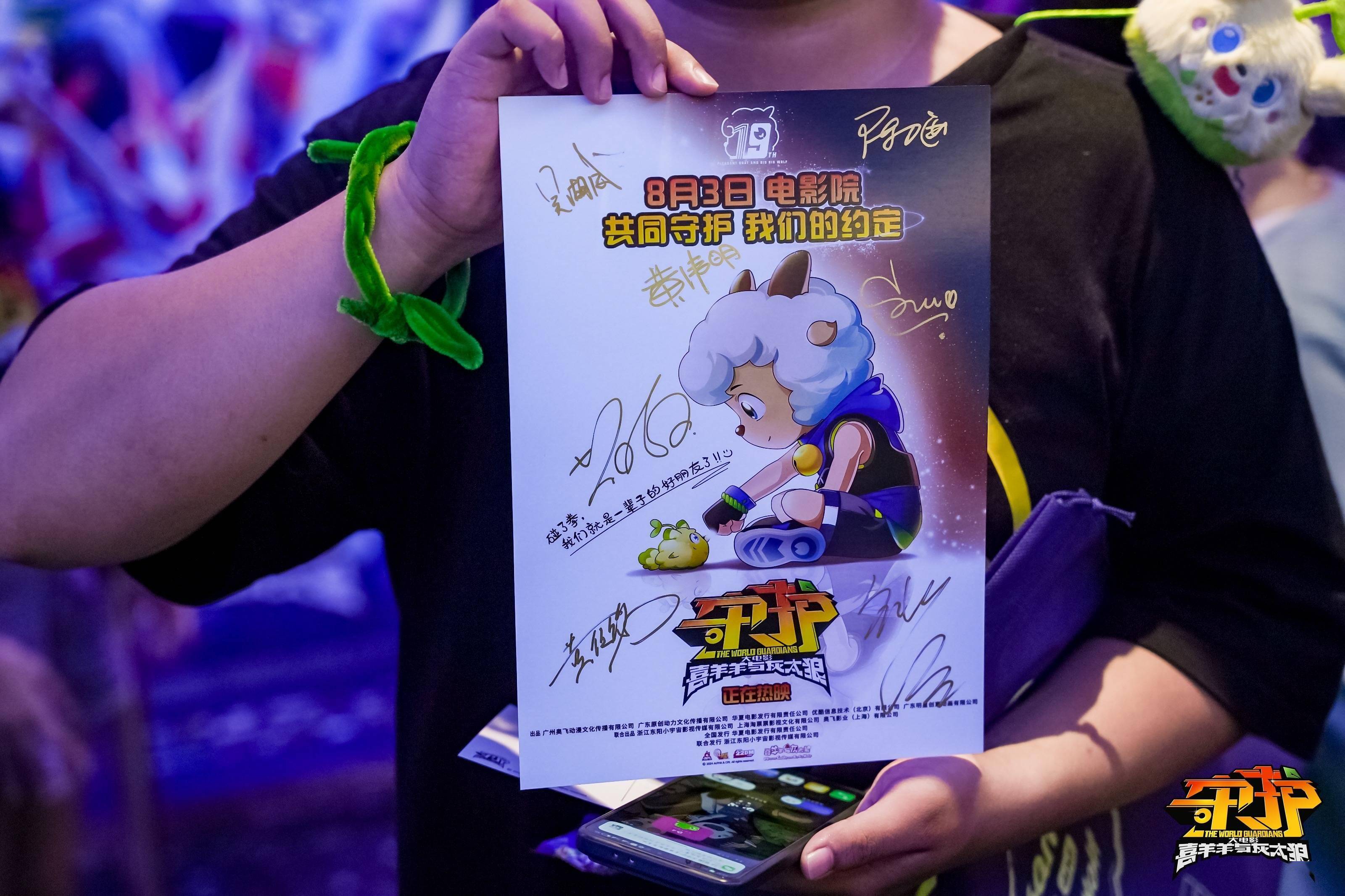 随后的签绘活动环节,粉丝们手拿《喜羊羊与灰太狼之守护》海报,有序排队等待主创签名。海报上的每一笔签名是主创与观众双向奔赴的最直接表达,让粉丝们爱不释手。除此之外,电影片方还为未能到场的粉丝们也精心准备了一份特殊礼物--19周年限定版电子“TO签”海报,期待大家走进影院,收集这份特别心意。这份独一无二的礼物不仅承载着对过往岁月的深情回顾,更是对每一位忠诚粉丝长久以来不离不弃支持与陪伴的深情回馈。
