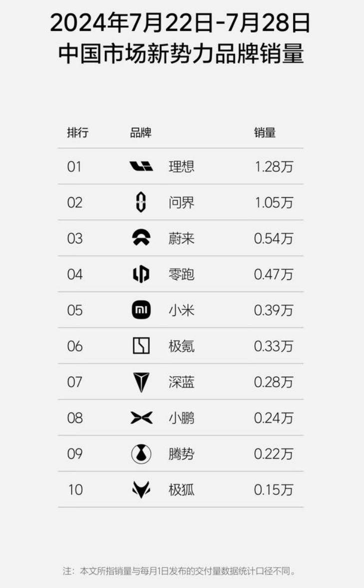 据报道显示,蔚来是第一家公开反对和拒绝加入周榜的车企。7月27日,蔚来联合创始人、总裁秦力洪公开表达了对汽车销量周榜的不满:“我们的品牌没有授权,凭什么用我们的品牌来发周榜,可不可以把我们品牌抠出去。”秦力洪认为“发布销量周榜单数据不严谨,同时还加剧了竞争。蔚来周销量数据在内部也不会有超过10个人知道。”同时,李斌也公开表示蔚来如果做到销量第一,永远都不会发周榜,或影射了理想。
