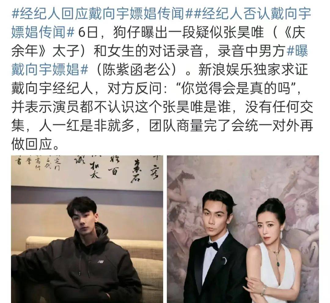 舆论持续发酵,有媒体求问戴向宇工作人员,对方表示人红是非多,否认嫖娼,还说戴向宇根本不认识张昊唯。