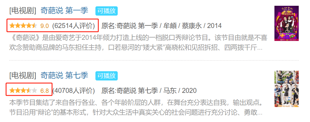 《奇葩说》第一季爆火后,后几季节目评分逐渐走低。