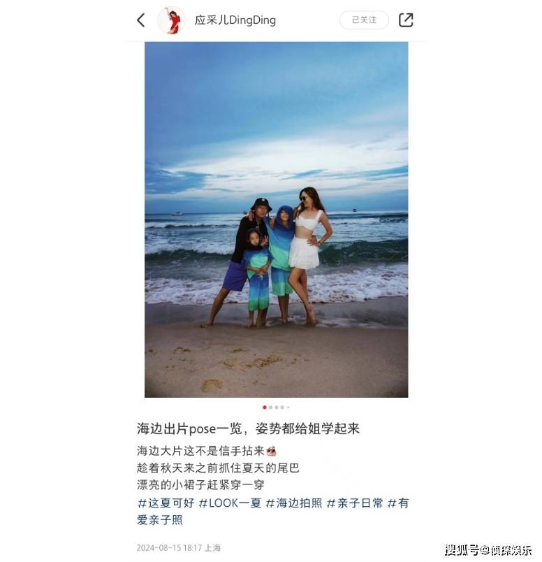 8月15日,陈小春娇妻应采儿在个人社交平台分享了一组一家四口海边游玩的照片,并开心发文:“海边出片pose一览,姿势都给姐学起来”。文末,应采儿还直呼“漂亮的小裙子赶紧穿一穿”,看得出来,姐姐是真的玩儿嗨了。