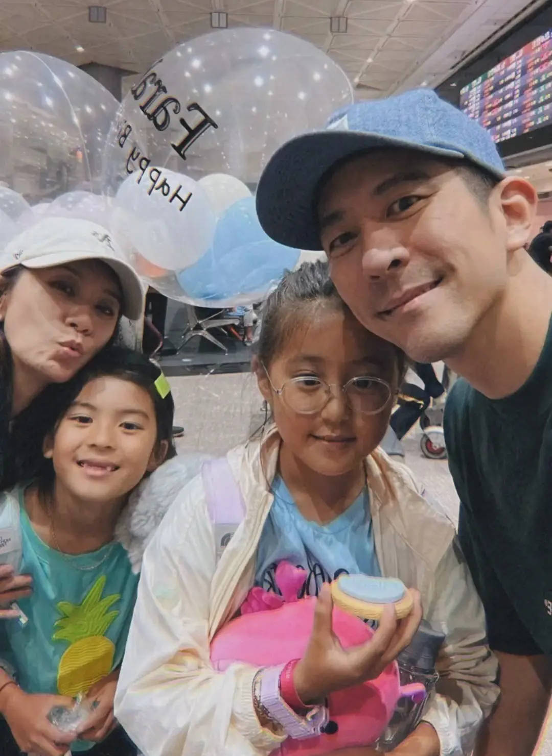 搜狐娱乐讯 近日,贾静雯修杰楷去机场接游学归来的咘咘和波妞。更巧的是,当天还是咘咘的9岁生日,两人贴心制作了生日卡片和应援牌接女儿们,非常有爱。