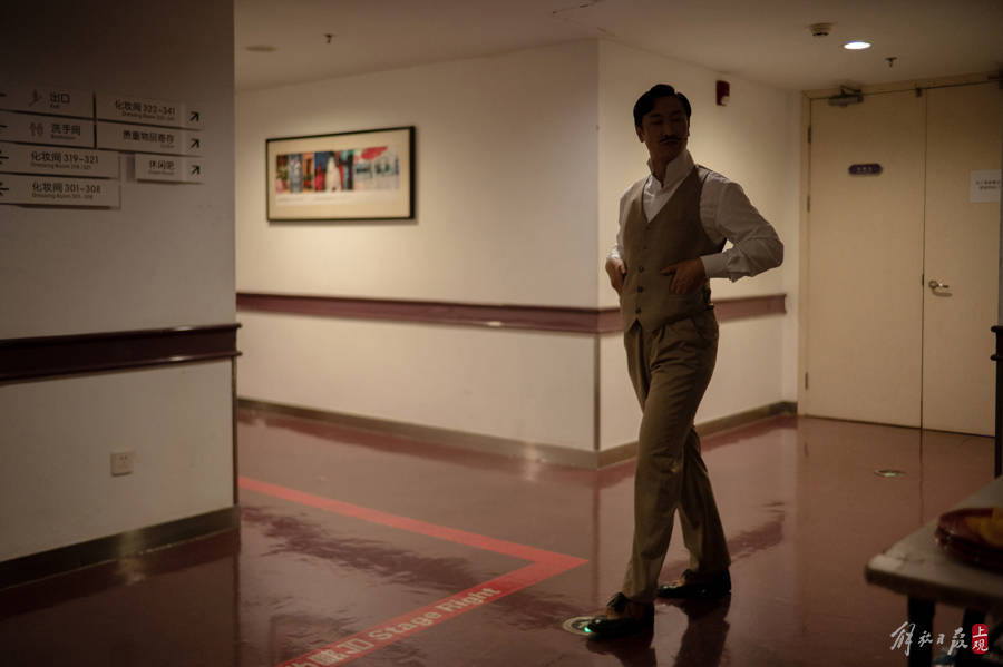 开演前15分钟,金星早早来到侧幕安坐进入角色。