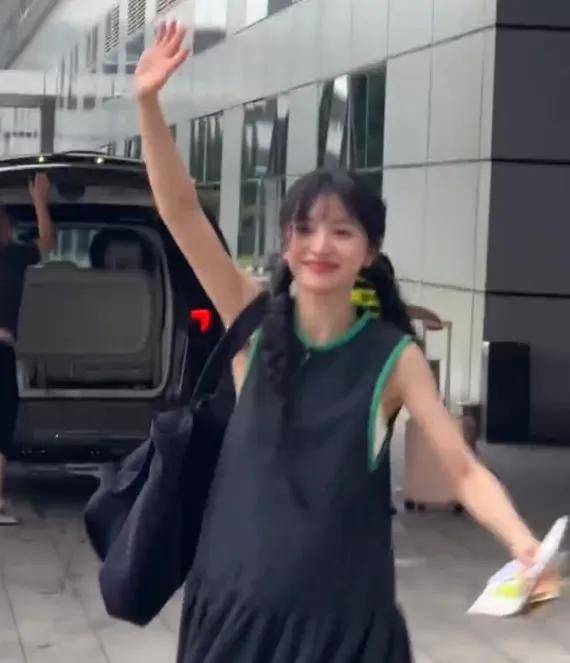 但是听到粉丝呼喊自己之后,田曦薇还是一脸笑容地回过头和粉丝打了招呼。