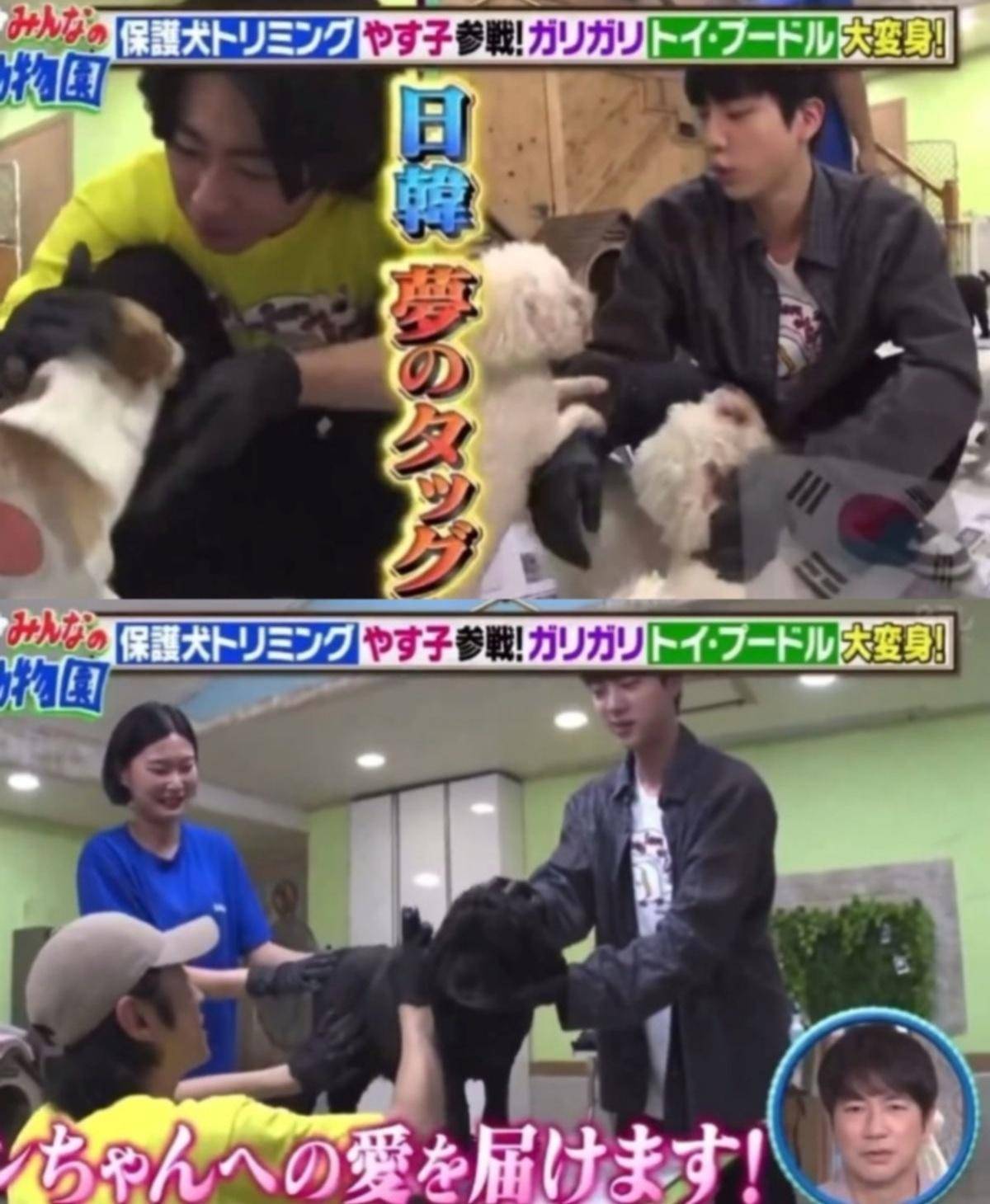 在韩国,人们和动物开始走向人与动物共同幸福的未来,与岚一起梳理修剪收容所的狗,相叶是岚最年长的成员,风靡全球的防弹少年团金硕珍刚于六月服完兵役,退伍后首次在日本电视上露面,这位韩日顶尖艺人以梦想的标签表达了他对狗的热爱。