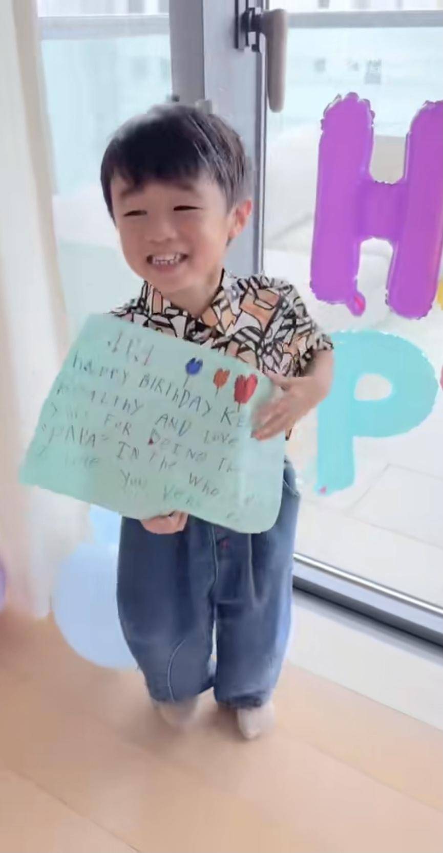 除了送上自己的礼物外,小家伙还为爸爸唱了生日歌,在家中与妈妈一起布置了很多气球,当然最值得一提的就是还表演了小魔术,或许成果不达标,但是小编相信作为父亲的古巨基看后一定开心的合不拢嘴。