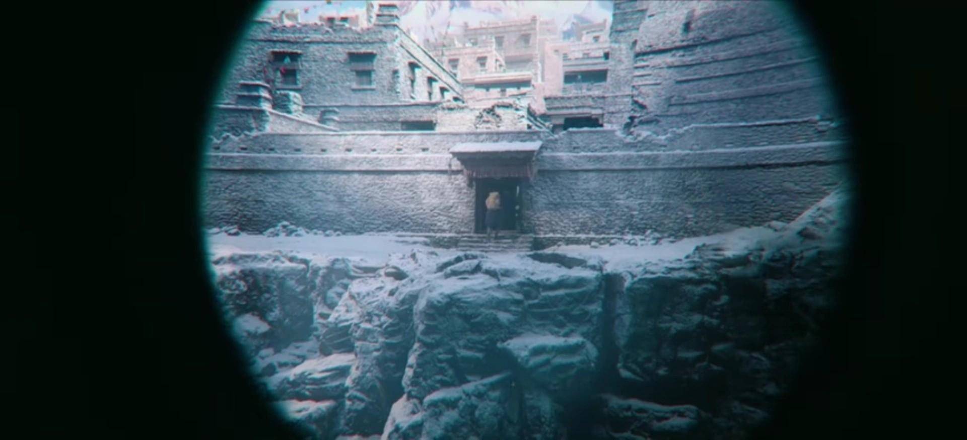 剧中冰雪覆盖的墨桑雪山,寒风凛冽,被雪域高原环抱。