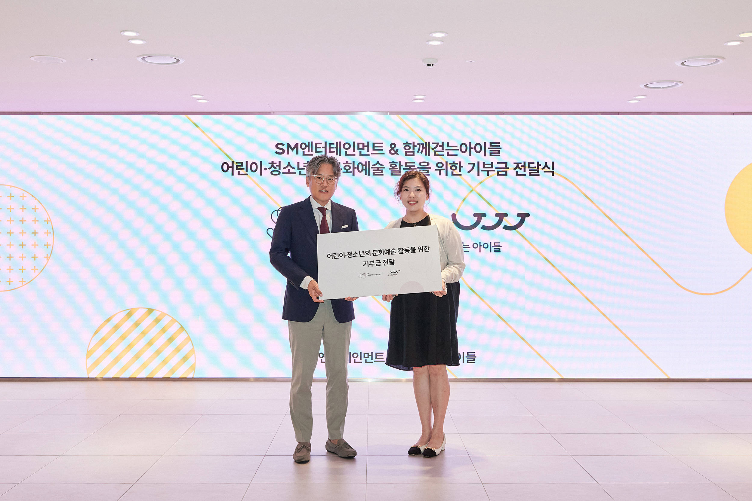 (左)SM娱乐共同代表张哲赫,(右)“同行的孩子们”局长金贤珠(音译) [照片=SM娱乐]